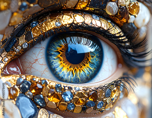 Closeup of a Golden Eye Mosaic with Brown and Grey Stones