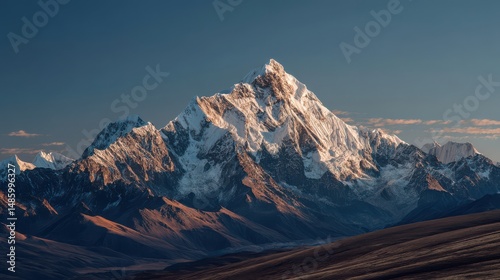 Ultra quality image of ultra quality image of mountain peak of the tibetan snow-capped mountains, a beautiful panorama of the mountains at sunset of the day.