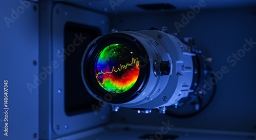 Innovative imaging technology with vibrant spectral data analysis reflected on the lens