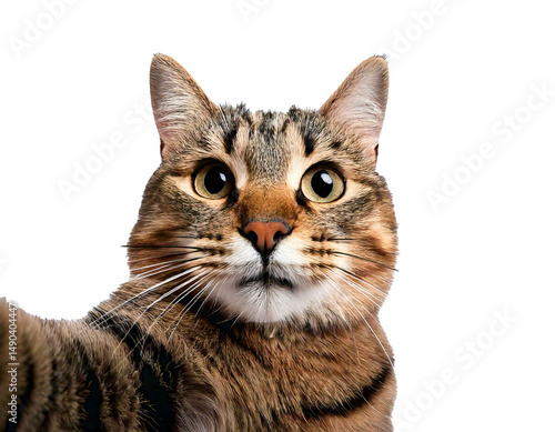 Cat, selfie, white background—this natural and isolated photo captures a curious feline taking a selfie. Perfectly lit, ideally framed, and charmingly expressive, it’s a fun and versatile visual asset
