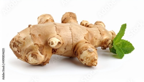 fresh jerusalem artichoke root isolated on white background, organic and healthy food, raw vegetable