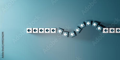 Flexibility and adaptation concept. Arrows on cubes following a flexible path. Reaction to events and dangers