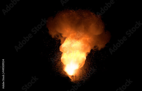 Realistic fiery explosion over a black background