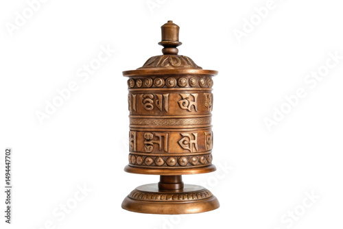 PNG Golden tibetan prayer wheel with intricate symbol engravings