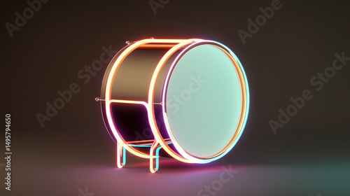 Neon-Glowing Drum with Vibrant Colors: Modern 3D Design for Performance and Nightlife Art Installation