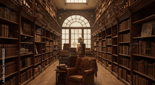 Classic Library Interior with Bookshelves and Armchair, Illustration