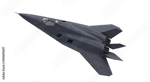 未来型戦闘機 強力な推進力 鋭いシルエット 滑らかな機体. AI Generated