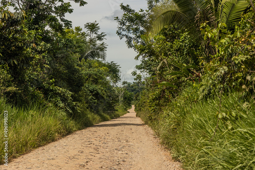 Unpaved road in the Amazon forest of Huanuco region near Santa Rosa de Yanayacu village, Peru