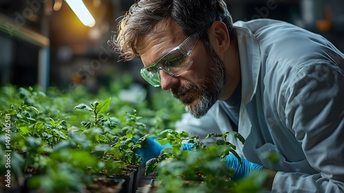 Bioengineer developing plant based solar panels to harness photosynthesis for renewable energy innovation