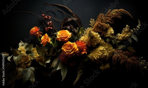 Jesienna kompozycja kwiatowa w ciemnych tonacjach