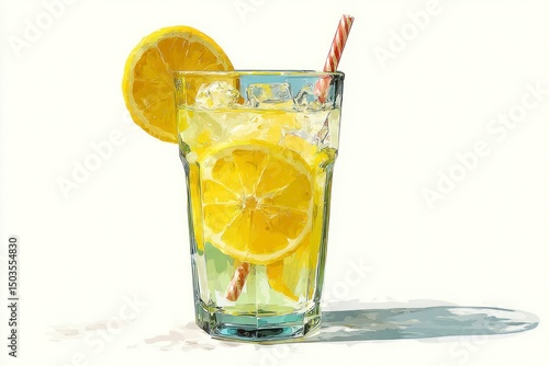 Refreshing Citrus Beverage with Ice and Straw in a Glass