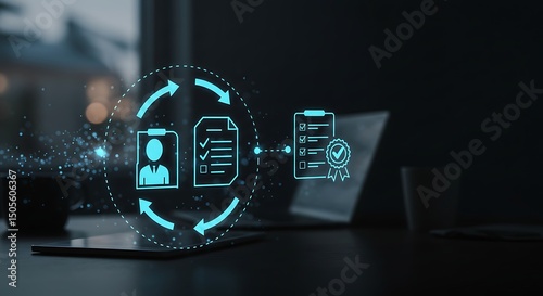 Digital Human Resources Process Depicted with Glowing Blue Icons
