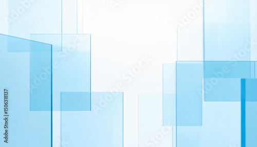 浮かぶ青のアクリル 淡い青色の半透明アクリル板が幾何学的に浮かぶ 静かで洗練された未来的なデザイン
