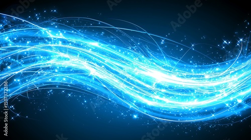 Bright, glowing blue wave lines creating a smooth, abstract flow over a deep dark surface, evoking a sense of modernity and calm energy