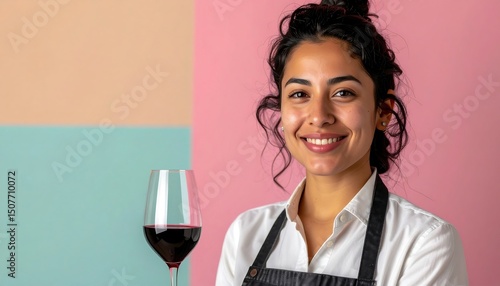 Happy Woman Sommelier Tasting Red Wine - Pastel backgrounds