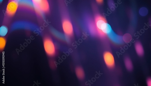 Abstract blurred background with colorful neon light leaks and glowing circles