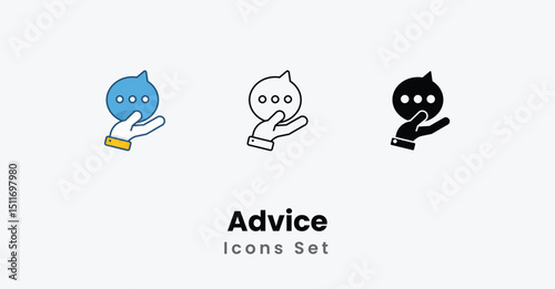 Advice Icons thin line, Black Glyph, Colored Line vector icon stock illustration
