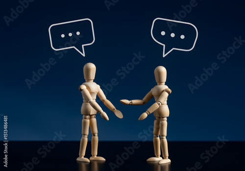 Communication concept with wooden figures and speech bubbles for business and interpersonal skills