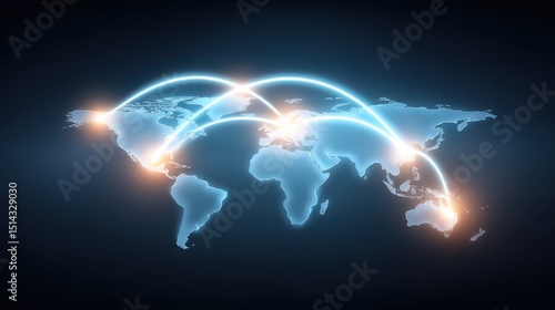 Being a leader in logistics and distribution centers at both regional and global levels. A global logistics hub with glowing connections extending across continents.