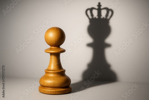 Conceptual Chess Pawn with King Shadow on Wall Symbolizing Potential and Aspiration