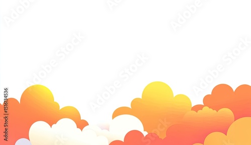 Warm, colorful clouds fill the bottom of the image, soft gradient colors, mostly orange and yellow, against a white background