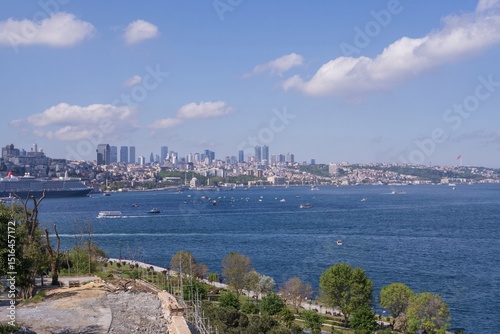 Beautiful view of Bosphorus Strait from Topkany Palace observation deck on a sunny day
