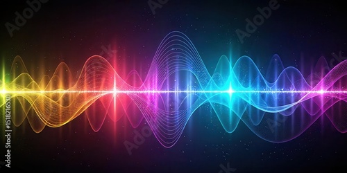 A vibrant, colorful soundwave visualization with glowing lines against a dark background, representing audio or frequency concepts.