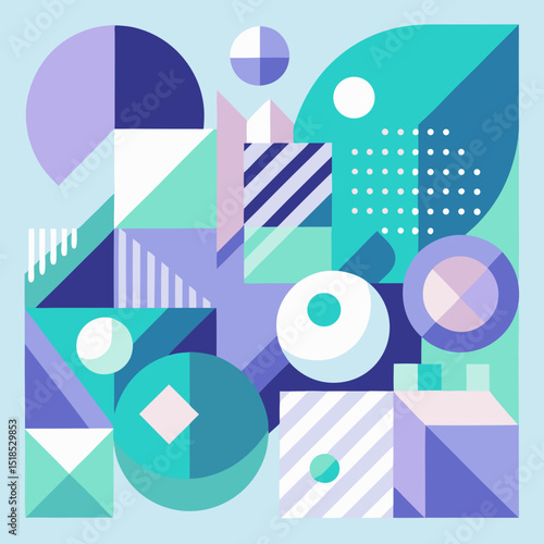 Abstract Geometric Pattern Design in Pastel Blue and Teal