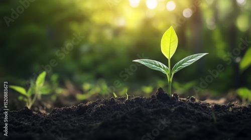 Tiny sprout plant emerging from soil in morning light eco environment hope growth scene
