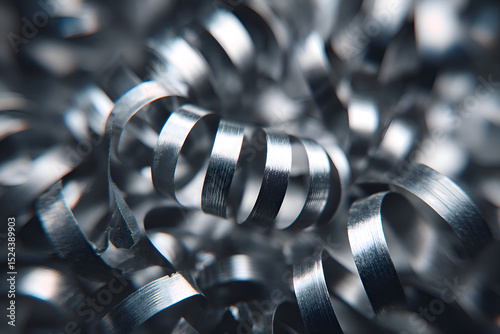 Metal shavings creating abstract spiral shapes, industrial waste concept