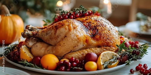 Roasted Turkey with Autumn Fruits for Thanksgiving