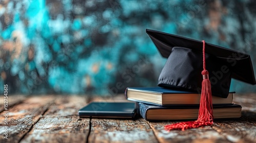 Online learning platform for university studies with Master's degree symbolized by hat and book