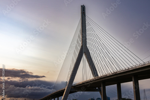 Flintshire Bridge stands prominently in the soft light of early morning, with its cables and concrete structure leading into the distance