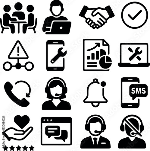 Outline icon collection for business help, feedback, rewards, and contact forms. Ideal for digital support services.