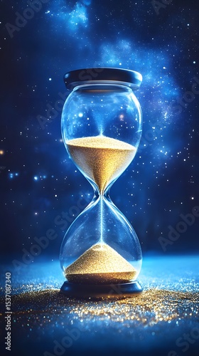 Golden Hourglass Against a Cosmic Blue Background