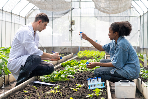 Researchers collected experimental results from vegetable plots in a temperature-controlled greenhouse, with children as research assistants.