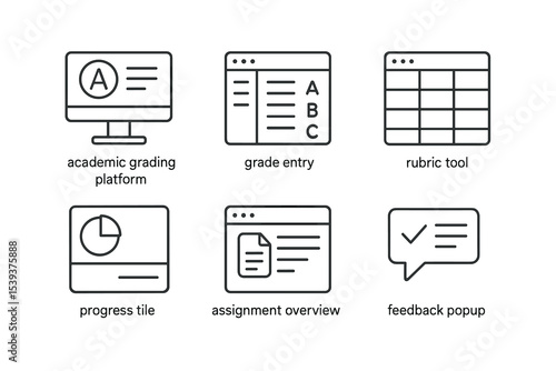 Academic grading tools: grade entry, rubric tool, progress tracking, assignment overview, feedback