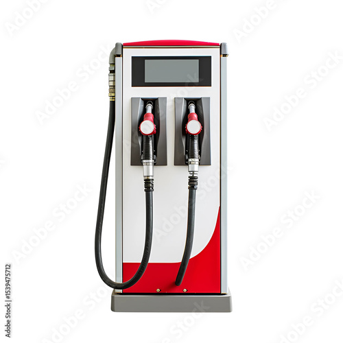 Modern gasoline pump with digital display and nozzle isolated on transparent background
