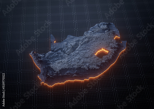 Illuminated South Africa Data Map Highlighting Geographical Features Neon Glow Light 3D Illustration