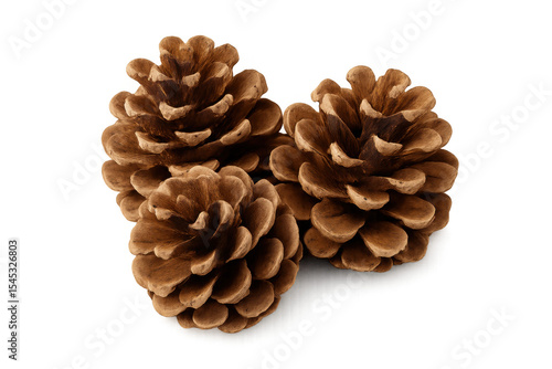 Studio shot featuring three pine cones on a transparent background, ideal for nature-themed designs