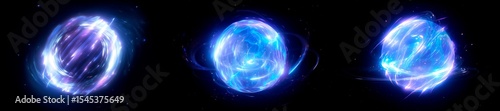 Cosmic Magic Energy Burst Overlay Effect – Blue sphere Lightning VFX, Glowing Magical Spell orb FX on Black Background