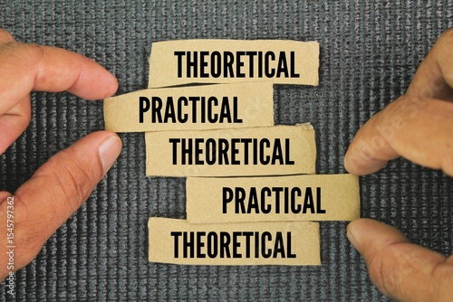 Box paper with the words Theoretical vs Practical. Practical knowledge is gained through your own personal experience, while theoretical knowledge is the experience gained from many others