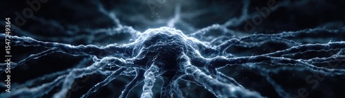 Dopamine pathway disruption leads to cognitive imbalance concept. Visual representation of neural connections in dark environment.