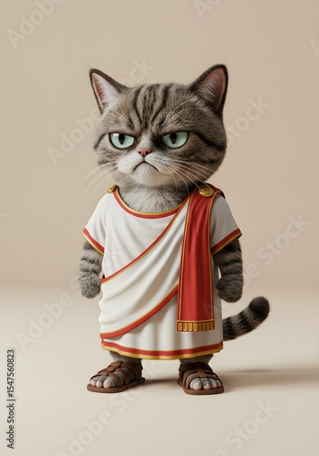 Grumpy Cat in Roman Toga: 3D Render of a Cat Dressed as a Roman Senator