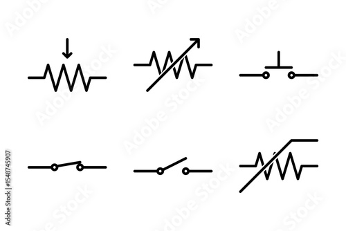 Icons of resistors potentiometer, rheostat and switches for circuit schematics.