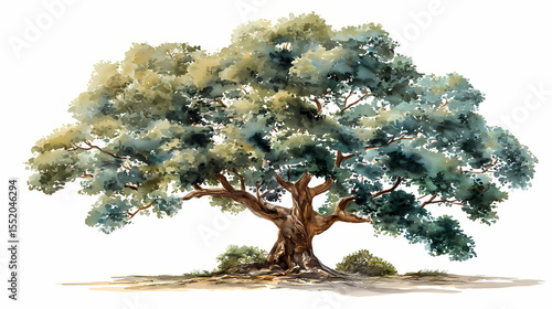 Watercolor Illustration of Sycamore Fig Tree – Sprawling Canopy with Clustered Figs