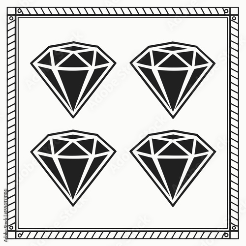 Four black diamond shapes arranged in a square inside a decorative border