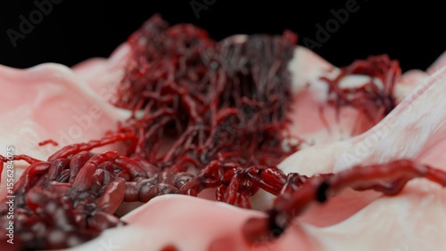 Cancer cell growth uncontrollably over tissue, Tumor infection cells and spreading, Invasive inflammation metastasis cancerous. reproduce by duplicating, cells expanding, Melanoma Cancer, 3d render