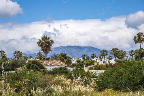 Typowa zabudowa na wybrzeżu morza śródziemnego w mieście Estepona w Hiszpanii.