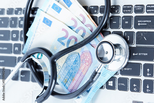 Stetoskop i pieniądze-opłaty za służbę zdrowia